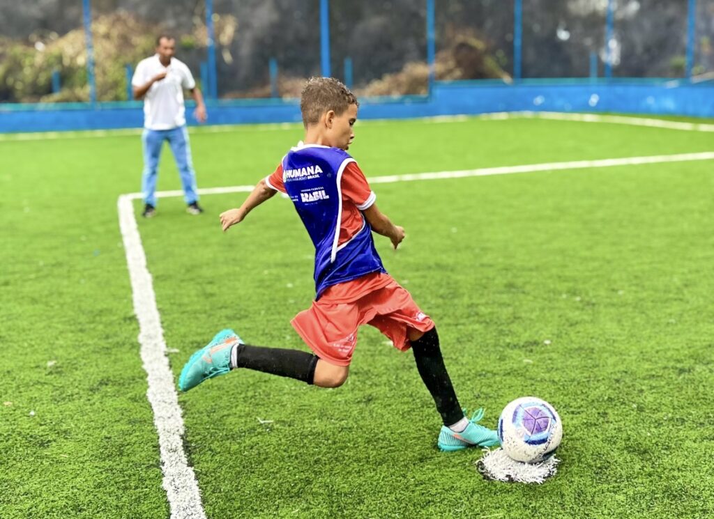 O futebol para crianças e adolescentes impulsiona, além da atividade esportiva, a cidadania, o desenvolvimento e a inclusão social. Esse foi o objetivo da Humana Brasil com mais um dos seus projetos ao promover uma escolinha de futebol gratuita, o Humana Futebol, na comunidade de Castelo Branco, em Salvador. A iniciativa deixa um legado positivo e duradouro para cerca de 100 crianças e adolescentes do bairro.