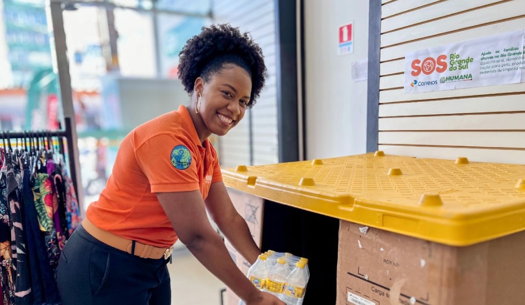 As Lojas Humana uniram forças com os Correios para ajudar as famílias afetadas pelas fortes chuvas no Rio Grande do Sul, promovendo a arrecadação de alimentos não perecíveis, produtos de higiene, materiais de limpeza, ração para os pets e água mineral, itens essenciais para ajudar as vítimas da tragédia.