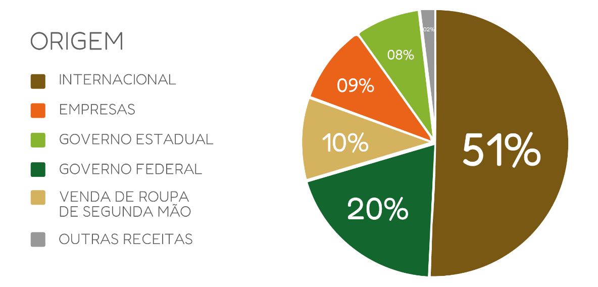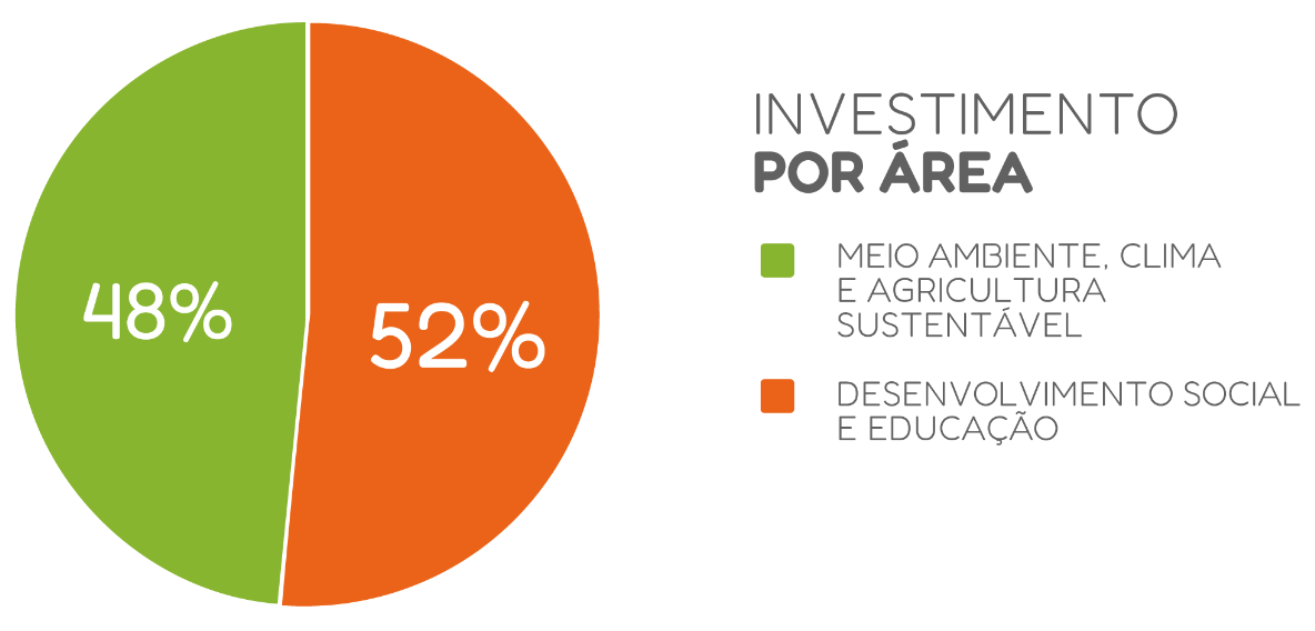 Os projetos são desenvolvidos em três áreas de atuação: Meio Ambiente, Clima e Agricultura Sustentável; Desenvolvimento Social e Educação e Coleta de Roupas de Segunda Mão - Repense Reuse.